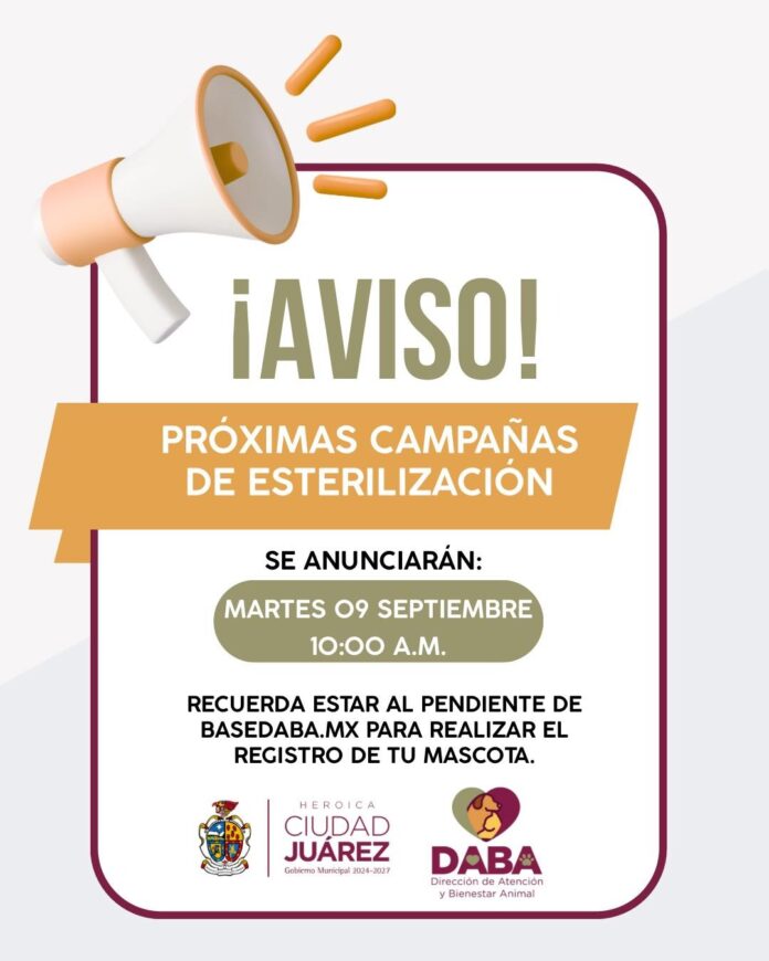 La Dirección de Atención y Bienestar Animal (DABA), estará informando la próxima semana sobre las campañas de esterilización que se llevarán a cabo de forma gratuita en algún sector de la ciudad, por lo que se pide estar pendientes de las fechas y los lugares.