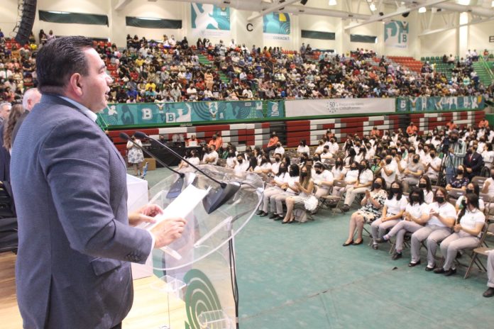 El director general del Colegio de Bachilleres, Marco Licón Barraza, agradeció al Presidente Municipal por apadrinar a los 840 nuevos egresados.