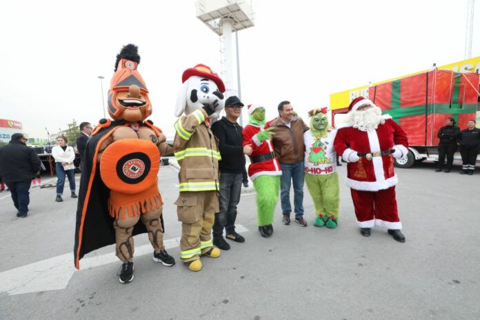 Esta tarde, el Presidente Municipal Cruz Pérez Cuéllar acudió a mostrar su apoyo a los locutores Román Vázquez y Shaon Ortiz, quienes participarán en el evento Un Regalo de Altura. Esta iniciativa tiene como objetivo recolectar juguetes para el programa Santa Bombero, en beneficio de los niños de Ciudad Juárez.