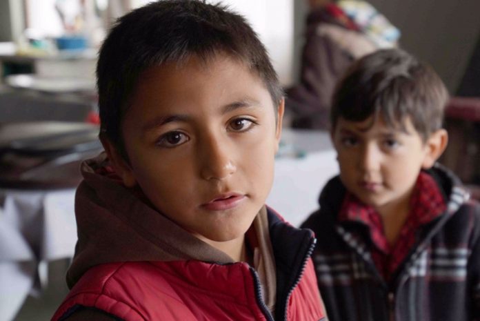 Sólo disponían de un calefactor de leña y una cobija colgada que hace las veces de muro, como forma de proteger de los vientos helados a los niños de escasos recursos que acuden al lugar.