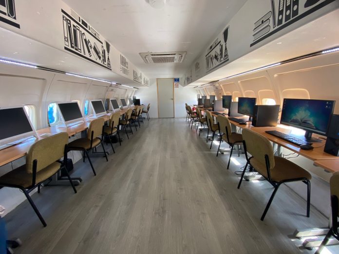 El Biblioavión es un espacio de aprendizaje, pero sobre todo un lugar donde los niños pueden interactuar de manera virtual, además de aprender de forma lúdica.
