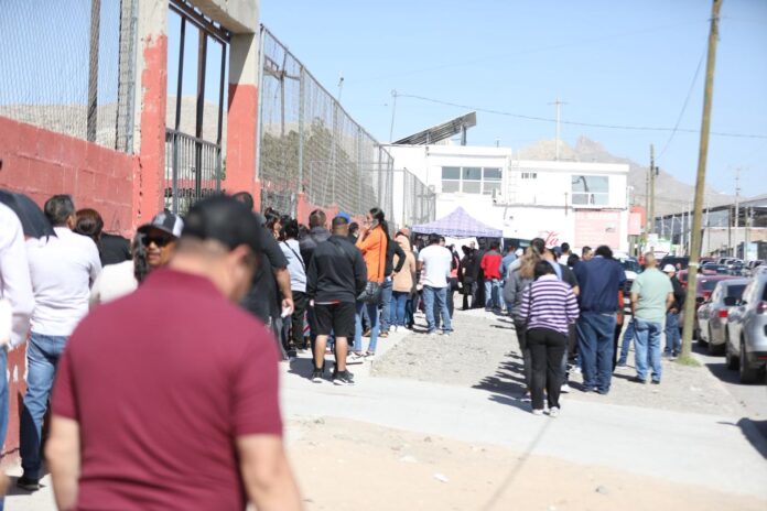 Ciudad Juárez, Chih. (ADN/Staff) – Vecinos de la colonia El Safari acudieron este sábado a la Cruzada Móvil de Tesorería Municipal, donde se instalaron cajas de cobro para facilitar el pago de impuesto predial e infracciones viales sin necesidad de trasladarse a oficinas.