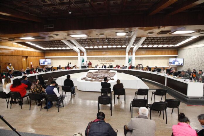 Ciudad Juárez, Chih .- En sesión ordinaria número 9, el Cabildo de Juárez presidida por el Presidente Municipal, Cruz Pérez Cuéllar, sometió a discusión 19 acuerdos entre los que se encuentran la entrega en comodato de cuatro predios en favor de la Junta Municipal de Agua y Saneamiento (JMAS) para la construcción de diques, así como un exhortó a la Dirección de Transporte Público de Gobierno del Estado que busca eficientizar el servicio de transporte para los habitantes del sur de la ciudad.