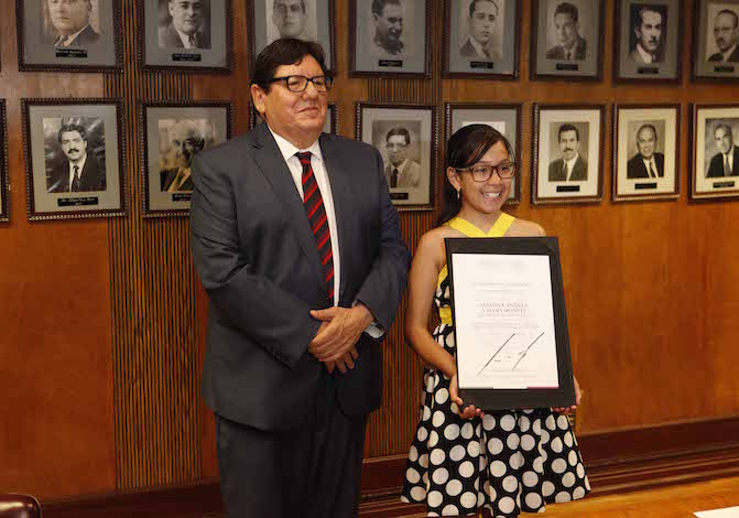 “De todos los 350 mil estudiantes que hay en los planteles de nuestra ciudad, ella es la más destacada al recibir esa distinción”, dijo el Presidente.
