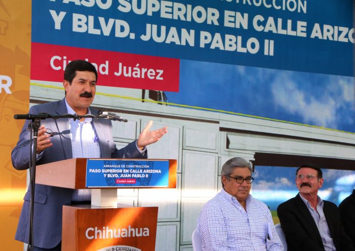 Ciudad Juárez, Chih. – El gobernador Javier Corral Jurado dio, la tarde del viernes pasado, el arranque formal de la construcción del paso superior en avenida Arizona y boulevard Juan Pablo II en Ciudad Juárez, con una inversión de 36 millones 671 mil 974 pesos, en beneficio de un millón 300 mil personas.