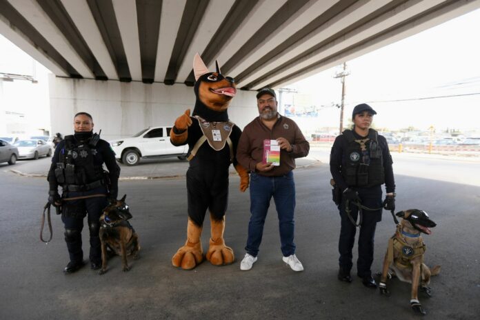 Ciudad Juárez, Chih .- Personal de la dependencia, en coordinación con Seguridad Pública Municipal y Protección Civil se colocó en el Puente Rotario, en el cruce de las avenidas Tecnológico y De la Raza, donde estuvieron repartiendo volantes del Maltratómetro, el cual indica las distintas manifestaciones de violencia contra los animalitos a través de colores.