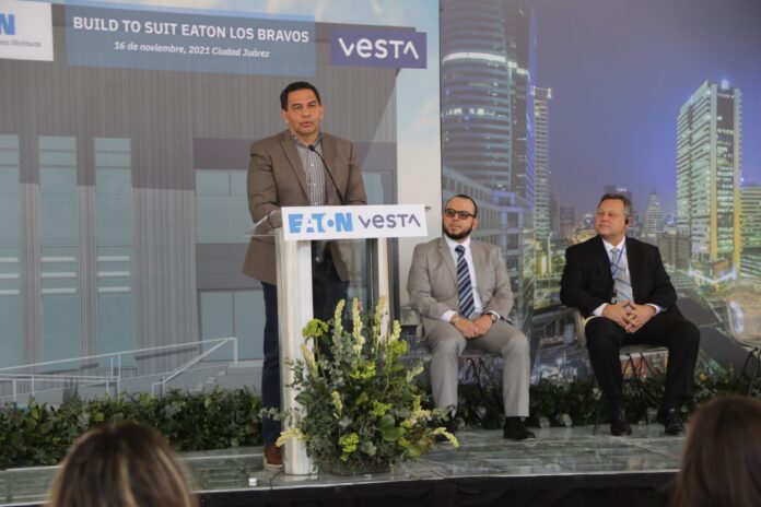 Ciudad Juárez, Chih .- Durante la inauguración del edificio de la empresa Vesta: Eaton Los Bravos, el Presidente Municipal, Cruz Pérez Cuéllar, reiteró a los empresarios su apoyo y compromiso de trabajar de manera coordinada para resolver distintos temas en materia de seguridad e infraestructura.