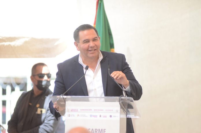 El alcalde acompañó al secretario de Gobernación, Adán Augusto López Hernández, a la secretaria de Seguridad y Protección Ciudadana (SSPC), Rosa Icela Rodríguez Velázquez y a la Gobernadora del Estado, María Eugenia Campos Galván, al evento en la Escuela Primaria Aurora Reyes Flores, al sur de la ciudad, sitio donde adultos canjearon sus armas por dinero, y los niños cambiaron los juguetes bélicos por educativos.