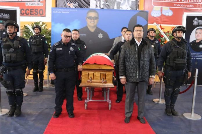 Esta es la primera vez que un Alcalde de Juárez y elementos de la Secretaría de Seguridad Pública Municipal se trasladan al lugar de origen de un compañero caído a rendir honras fúnebres.