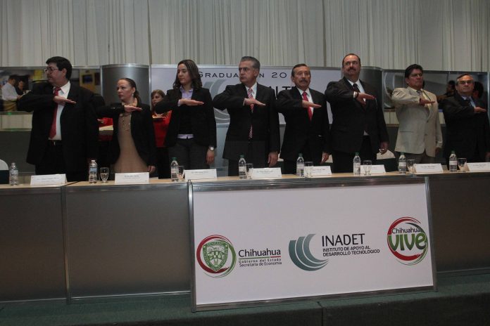 En representación de una generación de 800 alumnos, 250 egresados del presente año, recibieron en manos del edil juarense la documentación que los acredita como Técnicos en cursos como Maquinado Convencional, Maquinado por C.N.C., Moldeo por Inyección de Plástico, Soldadura TIG/MIG, Electromecánicos y Proyectos Especiales.
