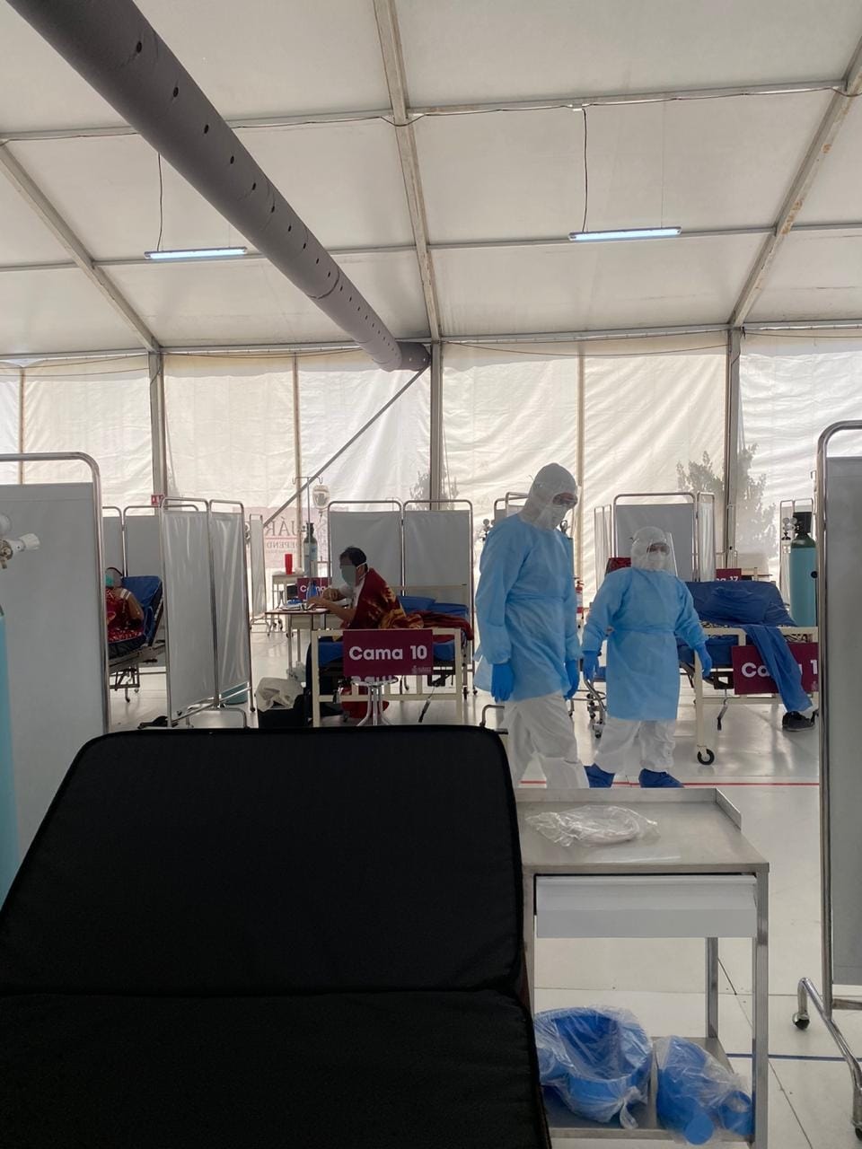 La funcionaria explicó que este hospital cuenta con un área de ingreso para pacientes, área de choque para estabilizar a pacientes y referenciarlos a la unidad hospitalaria, 20 camas, cuatro monitores, dos monitores desfibriladores y dos accesos alternos con túnel sanitizante para personal operativo.