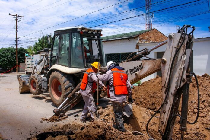 Ciudad Juárez, Chih .- Uno de los puntos de trabajo se ubica en el carril norte de la avenida De la Raza, en sentido oriente-poniente, a pocos metros de la intersección con la avenida López Mateos, donde se reportó fuga en una tubería de agua potable de 4 pulgadas de diámetro, la cual generó un hundimiento.