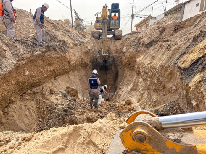 Para atender la contingencia, cuadrillas del Departamento de Alcantarillado realizan la reposición de aproximadamente 30 metros de tubería de 8 pulgadas, a una profundidad cercana a los seis metros.