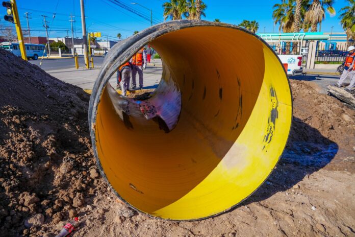 De acuerdo con el organismo operador, desde las seis de la mañana cuadrillas del departamento de alcantarillado iniciaron labores para reponer aproximadamente 12 metros lineales de tubería de 60 pulgadas de diámetro, una intervención que, por sus dimensiones y profundidad, requiere el uso de maquinaria especializada.
