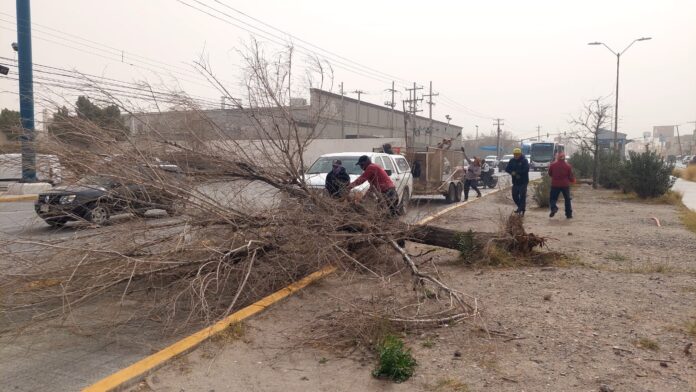 Ciudad Juárez, Chih. (ADN/Staff) – La Dirección de Parques y Jardines atendió alrededor de 60 reportes ciudadanos derivados de los fuertes vientos registrados ayer en la ciudad, los cuales ocasionaron caída de ramas y árboles, así como afectaciones en áreas verdes.