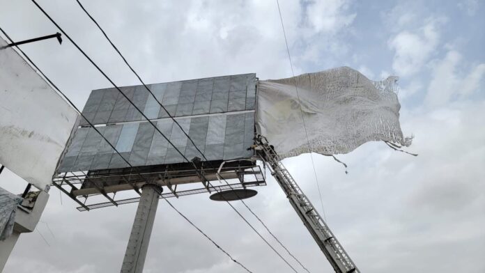 Entre los servicios atendidos se reportó el desprendimiento de una lona de un anuncio espectacular, así como la caída de un árbol, situaciones que fueron controladas sin mayores consecuencias.
