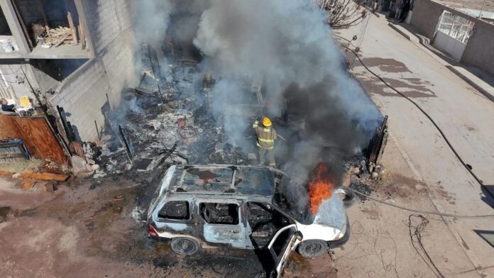 Ciudad Juárez, Chih. (ADN/Staff) – La Dirección General de Protección Civil atendió un incendio registrado en un domicilio de la colonia Lucio Cabañas, el cual se propagó a dos vehículos estacionados en la parte frontal de la vivienda, generando la movilización de cuerpos de emergencia.