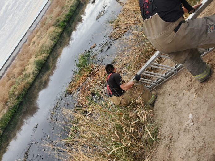 Otro de los servicios de mayor impacto ocurrió en la zona Centro, en el cruce de las calles Francisco I. Madero y Germán Valdez, donde personal de Rescate Municipal realizó maniobras para recuperar el cuerpo sin vida de una persona del interior de la Acequia Madre.