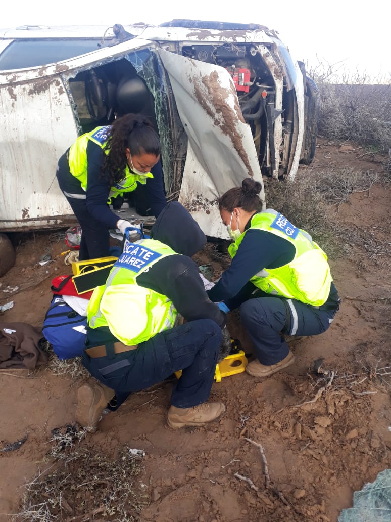 Debido a la emergencia, se comisionó a la unidad de Samalayuca para que acudiera hasta el punto donde se reportaba una volcadura en la cual resultó lesionado un hombre de 61 años de edad.