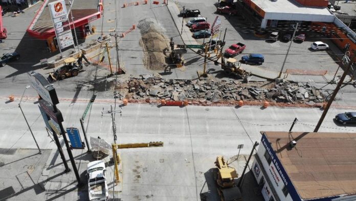 Las obras de reconstrucción del crucero de las avenidas Plutarco Elías Calles y Simona Barba ya registran un 53 por ciento de avance.