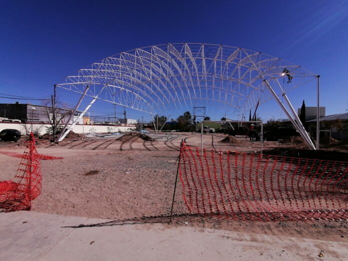 Ciudad Juárez, Chih. (ADN/Staff) – Como parte del programa de mejora de infraestructura educativa que impulsa el Gobierno Municipal, la Dirección General de Obras Públicas trabaja actualmente en la construcción de un domo escolar en la Escuela Primaria Arcadio González Chávez, ubicada en la calle Cuiteco y Basanoca, en el fraccionamiento Roma, al suroriente de Ciudad Juárez.