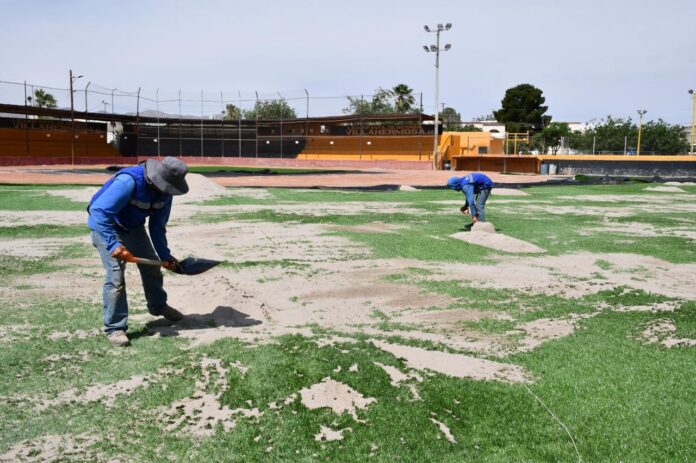 Ciudad Juárez, Chih. (ADN/Staff) – La Dirección General de Obras Públicas inició la instalación de pasto sintético en el campo de la Liga Infantil y Juvenil de Beisbol Villahermosa, como parte de los proyectos impulsados mediante el Presupuesto Participativo.