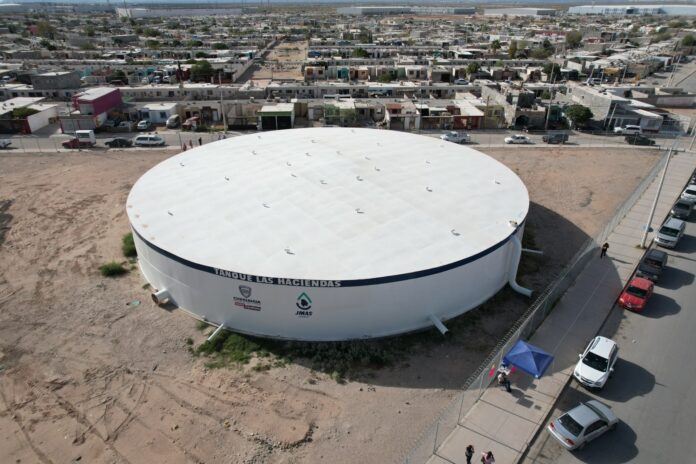 Para recuperar el tanque Las Haciendas, que podrá almacenar 5 mil metros cúbicos de agua potable, la J+ invierte 19 millones 952 mil 133 pesos para beneficiar a 5,880 familias. En el caso de los tanques Fundadores, se beneficiará a 10,640 familias y se invierten 50 millones 421 mil 267.33 pesos para su rehabilitación.