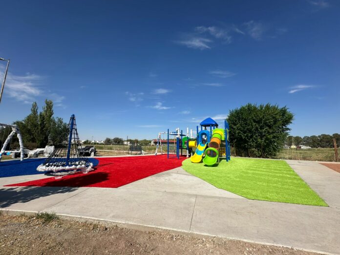Comentó que se trabaja actualmente en la colocación de los juegos infantiles y pasto sintético de colores.
