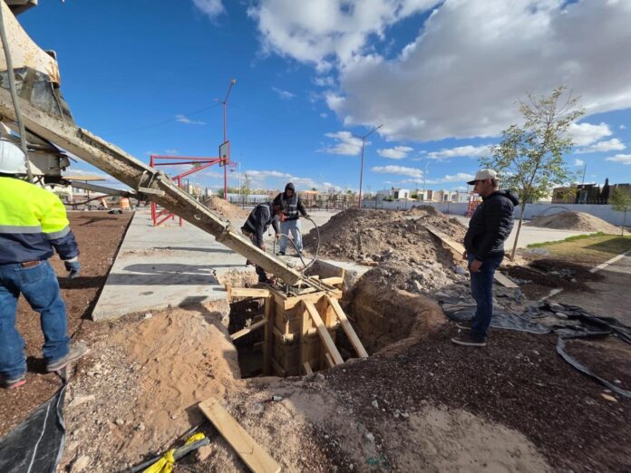 Ciudad Juárez, Chih. (ADN/Staff) – La Dirección General de Obras Públicas mantiene los trabajos de construcción de un domo en el parque Kanilaka Nawa, proyecto impulsado a través del Presupuesto Participativo y ubicado en las calles Paseos del Real y Hacienda San Miguel, en la colonia Reserva del Valle.