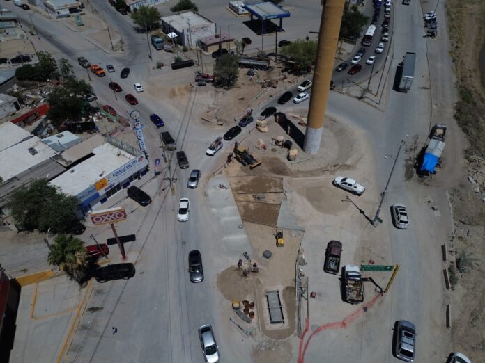 Ciudad Juárez, Chih .- Actualmente, se realizan labores en el Monumento al Nuevo Ciudadano, conocido popularmente como “El Cigarro”, para llevar a cabo la integración de esta importante línea de conducción al sistema recién construido.