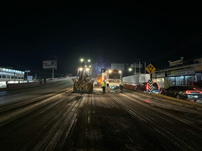 Como parte del programa de mantenimiento de la avenida Tecnológico, la Dirección General de Obras Públicas comenzó anoche con los trabajos de fresado en el puente de esta avenida en el cruce con la Manuel J. Clouthier, interviniendo ambos carriles de la vialidad.