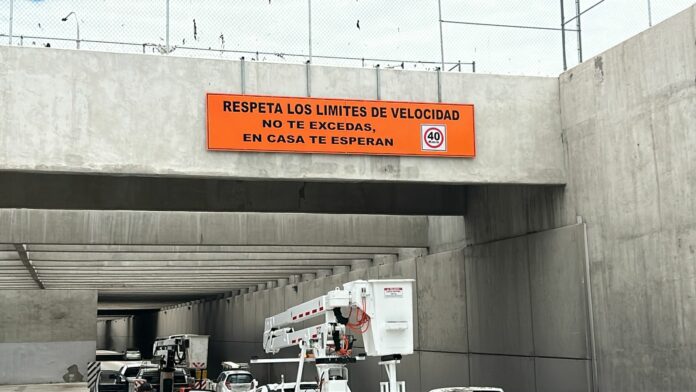 Ciudad Juárez, Chih .- Estos señalamientos que contienen el mensaje de concientización sobre esta campaña, también, anuncian que se disminuye la velocidad máxima para todos los conductores que transitan por este lugar de 50 a 40 kilómetros por hora.