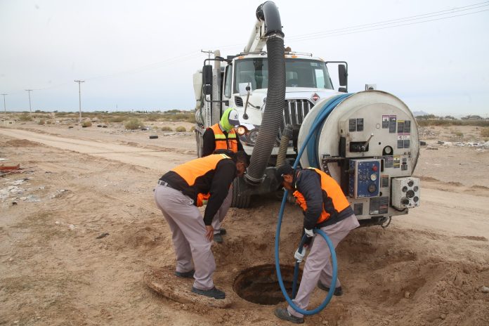 Ciudad Juárez, Chih .- Desde ayer y por un periodo de 48 horas, la Junta de Agua y Saneamiento de Juárez ha desplazado varias cuadrillas y máquinas vactor para realizar la limpieza y mantenimiento del colector Oriente XXI, tras registrarse el colapso del drenaje y presentarse brotes de aguas negras en varios fraccionamientos del suroriente.