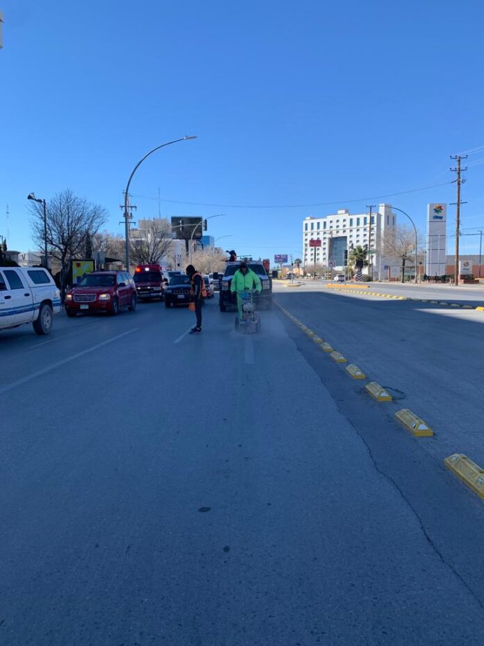 Ciudad Juárez, Chih .- Los agentes de la Coordinación General de Seguridad Vial estuvieron a cargo del abanderamiento de dichas acciones, con el fin de evitar algún percance y orientar a los automovilistas sobre cuáles carriles utilizar a una velocidad baja.