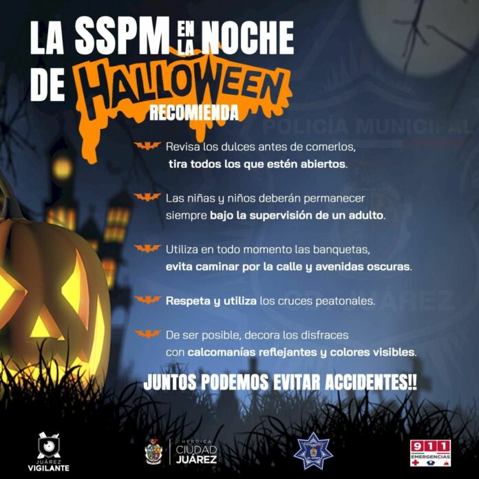 Ciudad Juárez, Chih (ADN/Arturo Hernández) .- La Secretaría de Seguridad Pública Municipal desplegará un importante operativo por toda la ciudad para brindar seguridad a las familias juarenses durante la celebración del “Día de Halloween”.