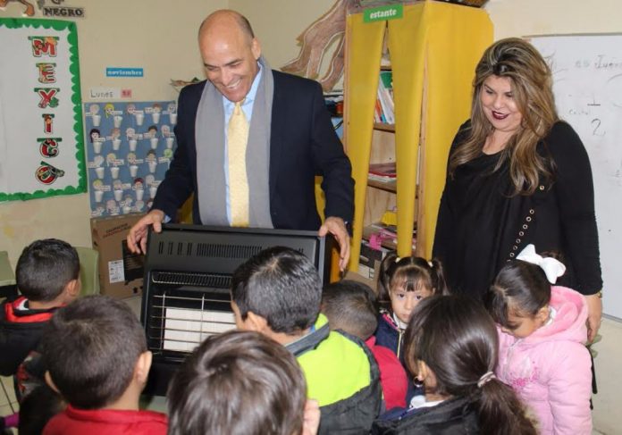 Este día, en el marco de una gira de trabajo, entregó calentones a escuelas de esta frontera, porque el objetivo es que los estudiantes aprendan en lugares adecuados.