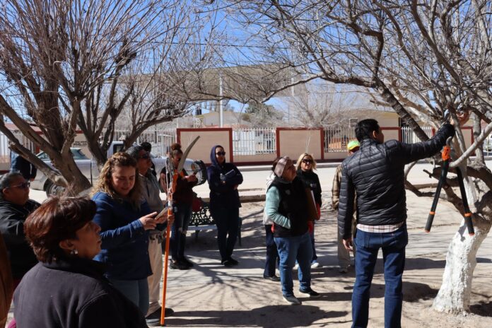 Valle de Juárez, Chih. (ADN/Staff) – La Dirección de Parques y Jardines impartió un taller de poda dirigido a habitantes del Valle de Juárez, con el objetivo de acercar conocimientos técnicos sobre el cuidado de árboles a comunidades alejadas del área urbana.