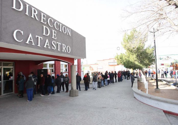 Óscar Castañeda Gaytán, director de Ingresos del Municipio, dijo que los contribuyentes comenzaron a formarse el martes desde las 5 de la mañana afuera de las oficinas de Catastro, en Francisco Villa e Ingeniero David Herrera Jordán, atendiendo al primero de ellos a las 6:56 horas.