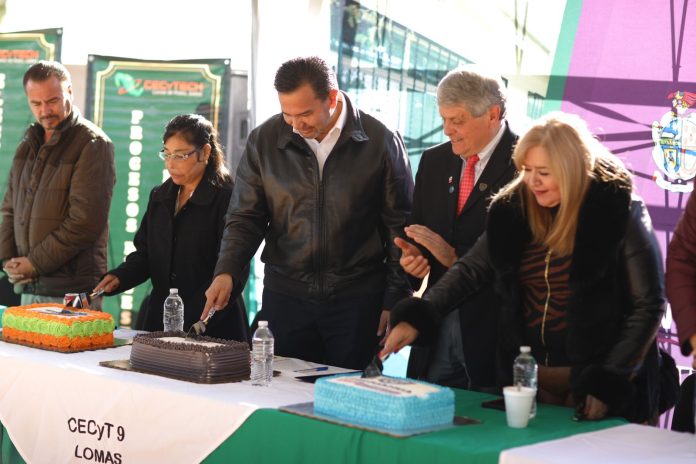 Este día el Presidente Municipal, Cruz Pérez Cuéllar participó en la ceremonia por el décimo tercer aniversario del Centro de Estudios Científicos y Tecnológicos del Estado de Chihuahua, plantel número 9, situado en la colonia Lomas de Poleo, en el norponiente de la ciudad.