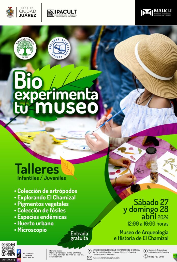 Bioexperimenta tu museo, es el resultado de la colaboración del MAHCH con Arly Vianey Lopes Guzmán presidenta del grupo Bioexperimenta Ciudad Juárez, quienes en conjunto ofrecen talleres que se imparten por las y los alumnos de las carreras del Instituto de Ciencias Biomédicas (ICB).