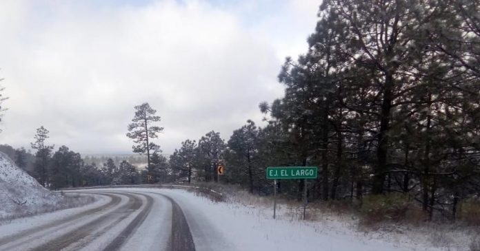 La Coordinación Estatal de Protección Civil del Gobierno del Estado dio a conocer que se encuentra cerrada la carretera Cd. Madera – Ejido el largo, a la altura del puerto Los Lobos, luego de la nevada que inició a las 10:30 de la noche.