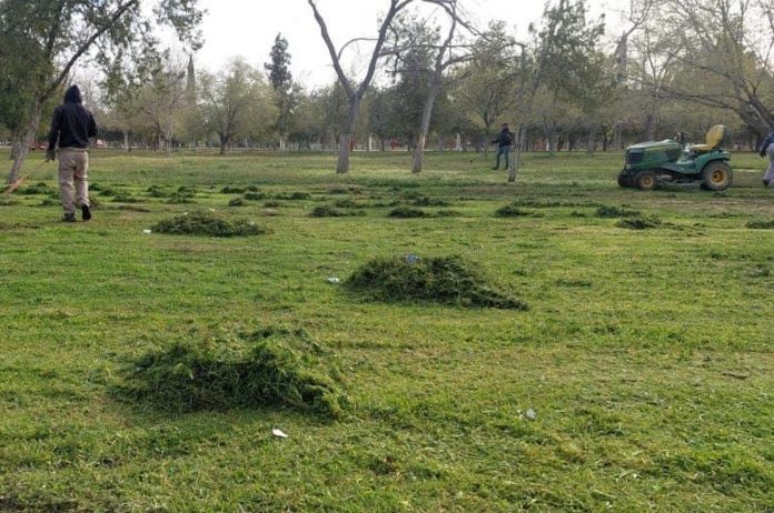 Ciudad Juárez, Chih. (ADN/Staff) – Brigadas de la Dirección de Parques y Jardines continúan trabajando en la limpieza y mantenimiento del parque El Chamizal, ante la espera de la visita de miles de familias con motivo de las vacaciones de Semana Santa.