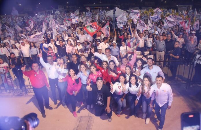 Acompañándolo en el estrado, Daniela Álvarez y Austria Galindo, candidatas al Senado y a diputada respectivamente, hicieron un llamado a la movilización y participación electoral. Álvarez destacó la importancia de que cada votante se convierta en un agente activo de cambio, mientras que Galindo se centró en la necesidad de fortalecer la democracia a través de la unidad y el coraje.