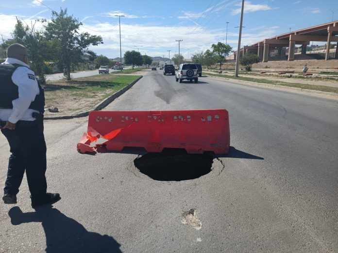 Ciudad Juárez , Chih .- Lo anterior debido a un hundimiento que se presentó en el sitio y que será atendido por la Junta Municipal de Agua y Saneamiento durante las próximas 48 horas, de acuerdo a lo que se dio a conocer.