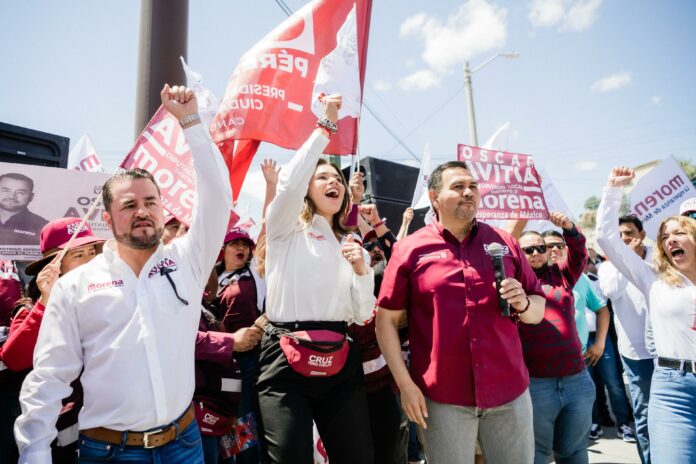 Ciudad Juárez, Chih. (ADN/Staff) – En un evento que demostró el amplio respaldo popular, Cruz Pérez Cuéllar, candidato a la alcaldía por la coalición “Sigamos Haciendo Historia por Chihuahua”, fue efusivamente apoyado por una multitud que se congregó en las calles de Ciudad Juárez. Acompañado de su esposa, Rubí Enríquez, y otros candidatos de su coalición, Pérez Cuéllar se sumergió en un ambiente de celebración y compromiso cívico que caracterizó su paso por importantes arterias de la ciudad.