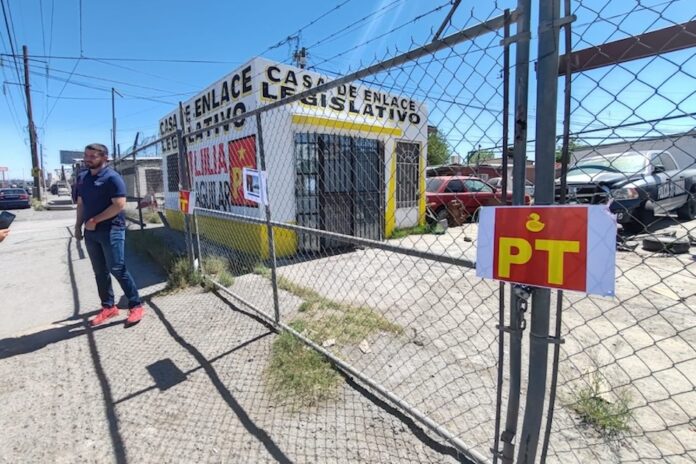 En un acto simbólico, Manuel Dick Alarcón, candidato de la coalición Fuerza y Corazón por México, clausuró la casa de campaña de Lilia Aguilar, acusándola de malversación de fondos y de instalar su sede en un lugar inapropiado.