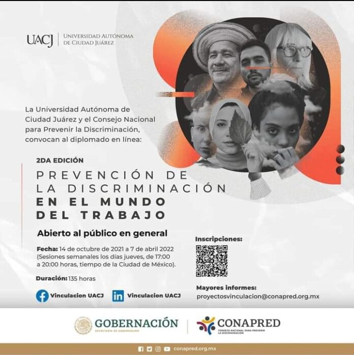 Ciudad Juárez, Chih .- Mencionó que se impartirá a los alumnos que cursan este diplomado, el tema “Problemáticas y evidencias de discriminación en el ámbito laboral”, donde se muestran las actividades que realiza el COMUPRED, así como las estrategias implementadas para resolver estos actos de discriminación.