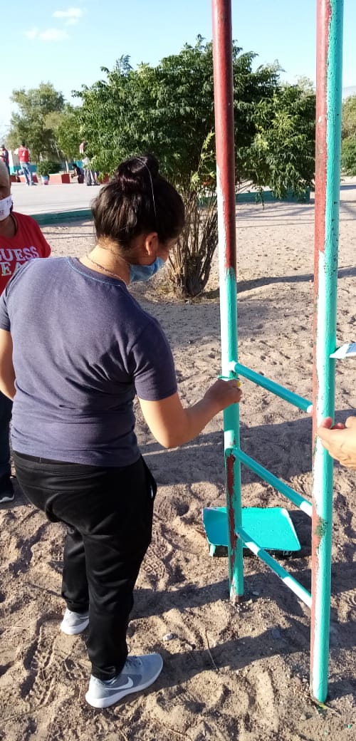 Personal de la Dirección General de Desarrollo Social colaboró este día con las tareas de remozamiento que llevó a cabo el Instituto Para la Cultura del Municipio de Juárez (IPACULT) en un parque ubicado al sur de la ciudad.