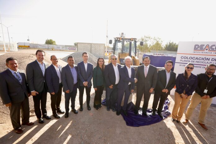 Este día, el Presidente Municipal, Cruz Pérez Cuéllar, acudió a la colocación de la primera piedra de la planta de reciclaje Deacero.