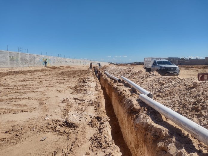 Esta obra también contempla la construcción de cuatro pozos de absorción que ayudarán a mitigar los problemas de inundación en las inmediaciones de la avenida Lote Bravo, en beneficio de la comunidad escolar del Centro de Bachillerato Tecnológico Industrial y de Servicios 270 (CBTIS) y las familias de la zona.